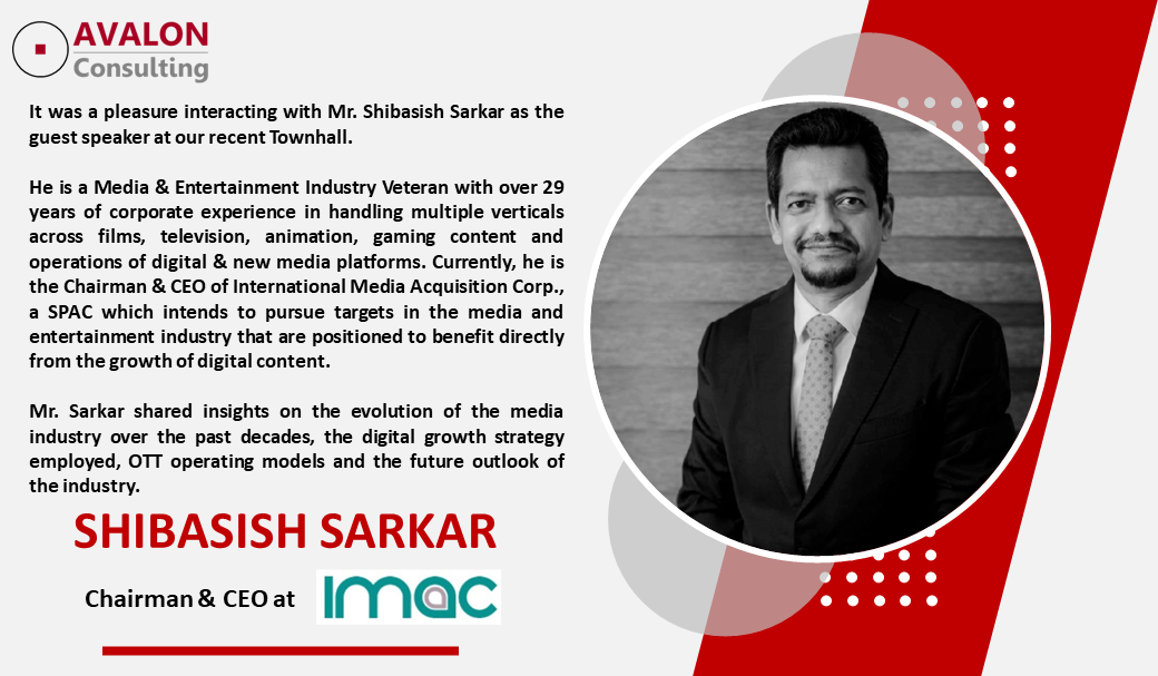 Avalon Consulting was proud to host Mr. Mr Shibasish Sarkar, Chairman and CEO of International Media Acquisition Corp.. In the keynote, he helped us to understand the landscape of media and entertainment history and shared interesting anecdotes from his vast experience in this sector.
