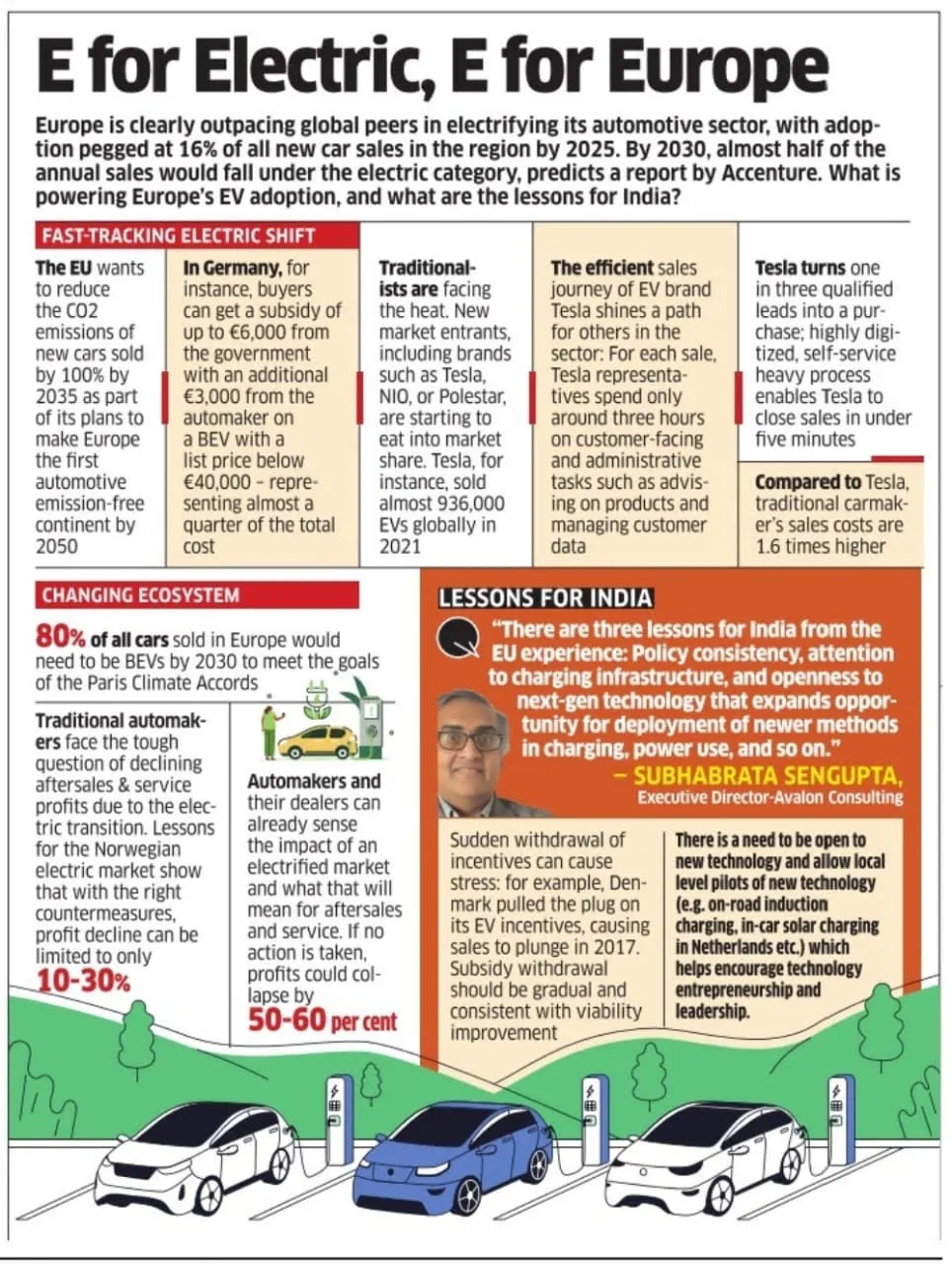 According to Subhabrata, the three lessons for India from the EU experience are policy consistency, attention to charging infrastructure, and openness to next-gen technology that expands opportunity for deployment of newer methods in charging, power use, and so on.